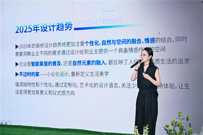 佳园主案设计师颜浪,用真实案例诠释治愈本质,从单身贵族到二人世界,再到三口之家、三代同堂,11年资深设计师现身说法:“治愈之家的设计,本质是让空间懂人——它不追求视觉上的惊艳,而是通过对生活习惯的精准捕捉,让居住者在动线,使用细节中感受到被照顾,从而卸下疲惫,获得细腻上的安稳与舒展。”她从设计的专业视角,以两个经典案例总结本次发布会的内容并落到实际案例当中,将个性化、自然与空间的融合,再结合情感需求,用设计为每一位用户提供一个具备情感疗愈的空间。