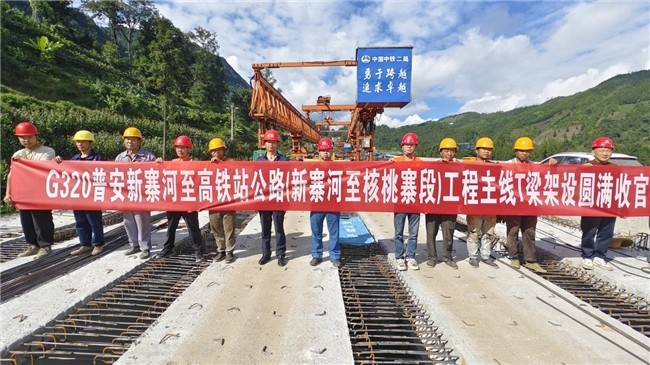 8月28日,随着最后一片T梁稳稳落定,中铁二局承建的G320普安新寨河至高铁站公路(新寨河至核桃寨段)工程主线T梁架设任务圆满完成,标志着项目桥梁工程全面进入桥面系及后续施工冲刺阶段,为全线按期通车奠定了坚实基础。