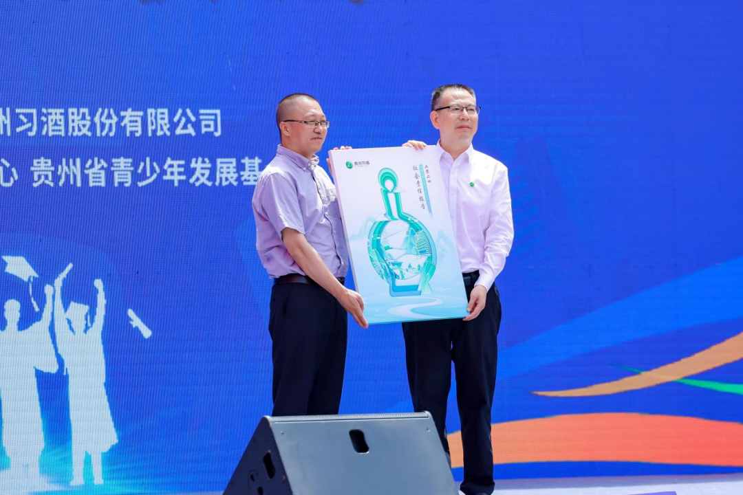 启动仪式上,李豫贵向习酒集团授予“习酒·我的大学”公益19周年纪念牌,汪地强代表习酒集团接受这份荣誉。在安丰明的见证下,汪地强代表习酒集团向贵州省青少年发展基金会捐赠1000万元逐梦奖学金。