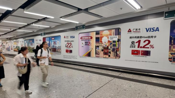 (广发Visa卡在中国香港西九龙高铁长廊的广告)