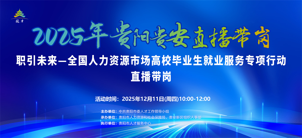 为积极响应国家高校毕业生就业服务专项行动的部署,切实解决高校毕业生就业难题,畅通企业与毕业生就业对接的“最后一公里”,破解毕业生经验不足、人岗匹配难等问题,由中共贵阳市委人才工作领导小组主办,贵阳市人力资源和社会保障局、贵安新区组织人事部联合承办的“职引未来——全国人力资源市场高校毕业生就业服务专项行动”直播带岗活动,将于12月11日上午10:00正式拉开帷幕。