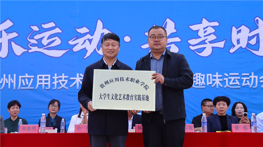 现场颁发牌匾。(左为贵州应用技术学院执行院长郑晓明、右为福泉文化广电和旅游局副局长杨粒)