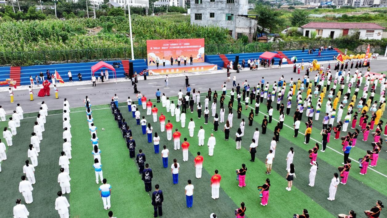8日清早,启动仪式在贞丰县全民健身活动中心启幕。龙狮腾跃,太极行云流水,健身气功舒缓悠扬,观众掌声此起彼伏;禁毒、反诈科普展位前同样人头攒动,“奋进新征程·运动促健康”的横幅在晨光里格外醒目。