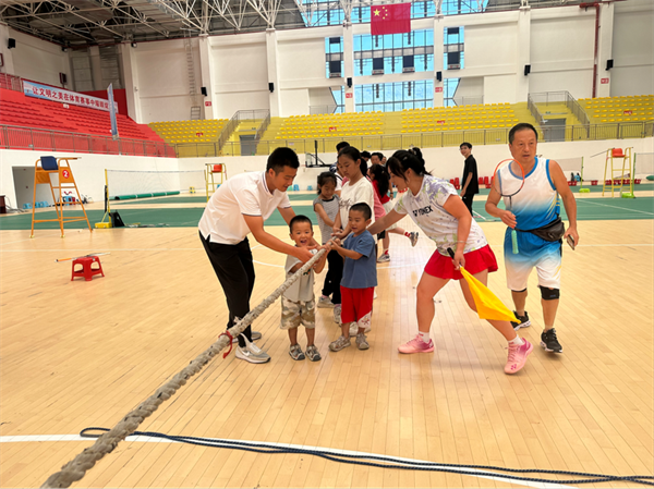 赛事聚焦“全民参与、趣味互动”,个人项目设置投篮、足球射门、套圈、羽毛球四大类别,兼顾竞技性与娱乐性。家庭项目同样精彩纷呈,拔河、夹乒乓球接力、亲子跳绳三大项目成为家庭协作的“试金石”。赛场上,选手们热情高涨。个人项目中,参赛者全力以赴,向着“更快、更准、更强”的目标冲刺;家庭项目里,家庭成员互帮互助,用默契与坚持书写团队精神。赛场下,观众们热情不减,加油声、掌声持续不断,邻里间的距离在共同观赛、呐喊助威中逐渐拉近,整个赛事现场充满活力与温情。