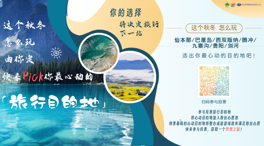 10月14日-10月20日活动期间,贵阳中国旅行社开启“#2024秋冬,你最心动的旅游目的地是哪里”话题投票活动,参与投票旅行目的地,将心动目的地加入粉丝心愿池,得票最高的心动目的地将整合成旅游线路来满足粉丝心愿。