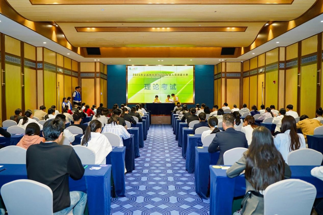据了解,本次大赛分为理论考试(笔试)、现场操作和团体风采展示三个板块。其中,笔试环节已于9月27日顺利完成,主要考察文化和旅游行业政策法规、时事政治及饭店服务基本知识。当天还进行了裁判会议及领队会议,相关领导为裁判团颁发聘书,各赛项参赛选手按流程进行了抽签,为大赛顺利举行做足准备。